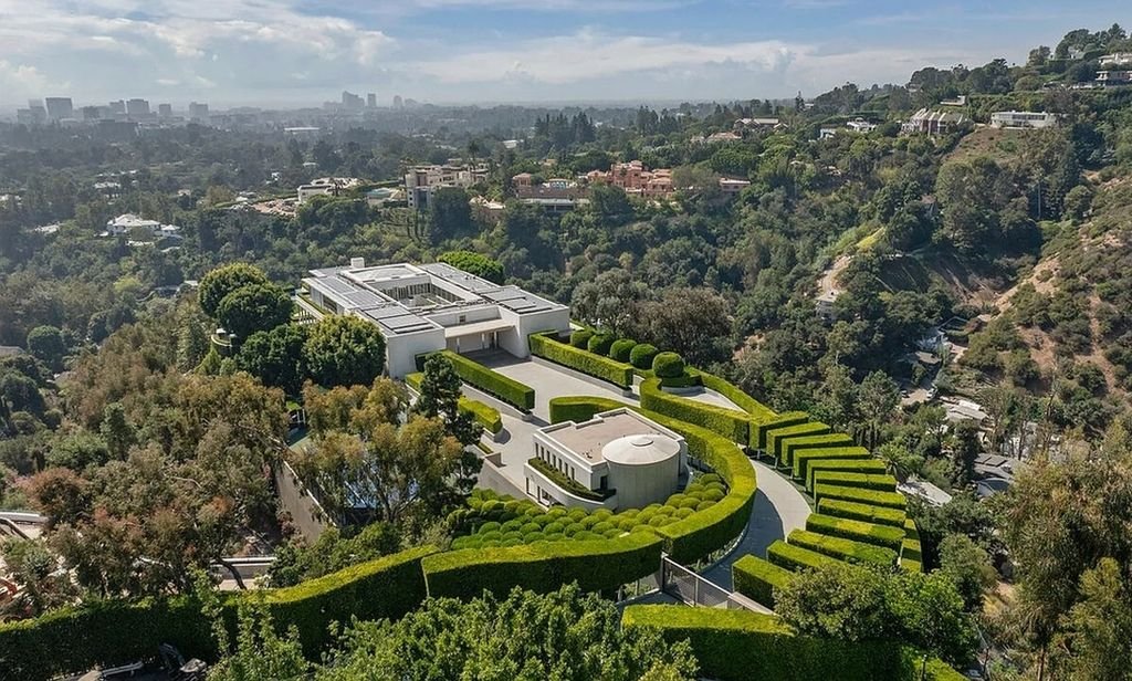 $195 million for an estate in Los Angeles. The late architect Ed Tuttle finished the 50,000-square-foot home in 2012. It is situated on a 6-acre peninsula with unmatched vistas of Los Angeles from downtown to the Pacific Ocean. The construction of this house took many years, involving the purchase of several property lots between 2001 and 2005, with a final purchase price of $14.7 million. Pritzker’s use of handcrafted wood finishes and imported Italian limestone demonstrate his dedication to architectural quality in every detail. After The One and The Manor, this home, sometimes referred to as “The Angelo Estate,” is the third-largest estate in Los Angeles.